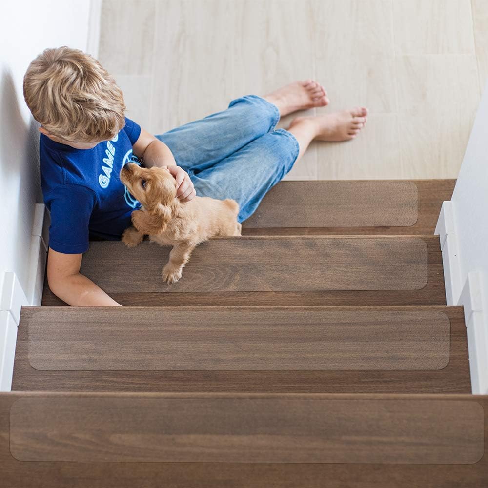 • These clear anti-slip strips, made out of PEVA material, not only has a soft surface, but also adds additional grip to the floors, which will effectively keep the elderly, kids and pets safe.